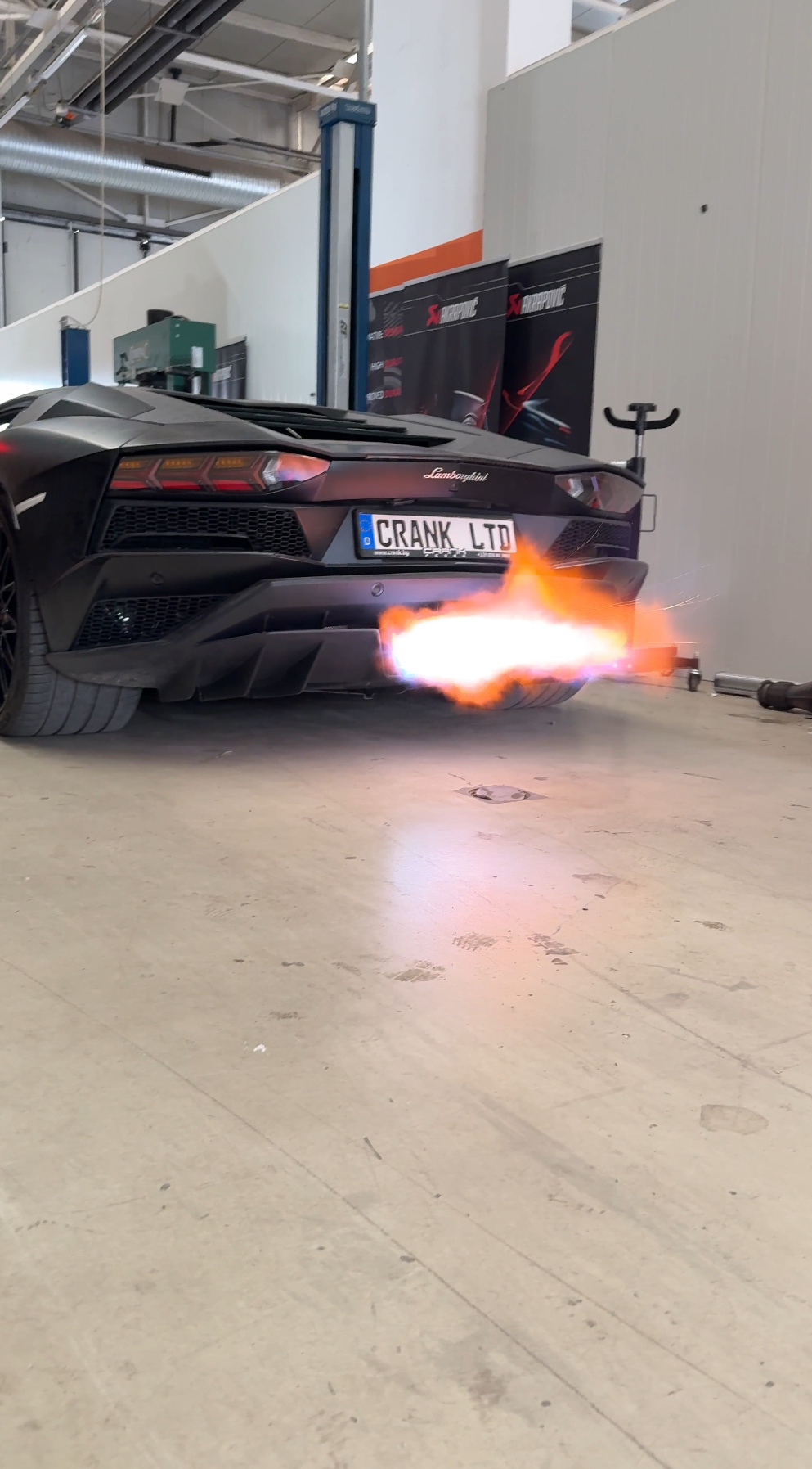 Lamborghini LP-740 Aventador S tailored exhaust made by Crank Ltd shooting flames