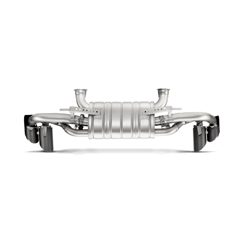 Following the success and experience gained from the Slip-On Line exhaust system that Akrapovič developed for the Lamborghini Gallardo, the new system for the Lamborghini Huracán takes this stunning car to new levels. Precision engineered from a high-grade titanium alloy, which is designed to significantly reduce weight and improve handling, the Slip-On Line has bigger main pipes than the standard system and a specially designed X-part (for cross-flow) in the muffler to reduce back-pressure, increasing power and torque levels right across the rev range. The unique growl from the naturally aspirated V10 engine is improved as the performance grows, delivering a distinctive note that thrills the senses, without any unwanted cabin noise. At lower revs and during cruise operation the valves are closed, producing a deeper and sharper exhaust note, but when the revs rise and the valves open, the full passionate soundtrack of the engine is released to show that the Huracán means business. This exquisite system is perfectly finished with four carbon fibre tailpipes, ensuring that this exhaust looks as good as it sounds and performs.