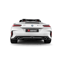 Manufactured to exacting specifications from high-grade titanium – with parts cast in Akrapovič’s in-house foundry – this system utilises lightweight materials to reduce overall vehicle weight and optimize power and torque through the entire rev range. Meeting ECE type approval, the design of the system fully adapts to the lines of the car, and the single-muffler layout with four superb hand-crafted carbon-fibre round tailpipes give a distinctive look to the rear of the car. Various sound modes add to the experience, with a sporty and animated roar from the six-cylinder engine when the revs rise, and a more pleasing experience in comfort mode, ideal for cruising with the roof down.