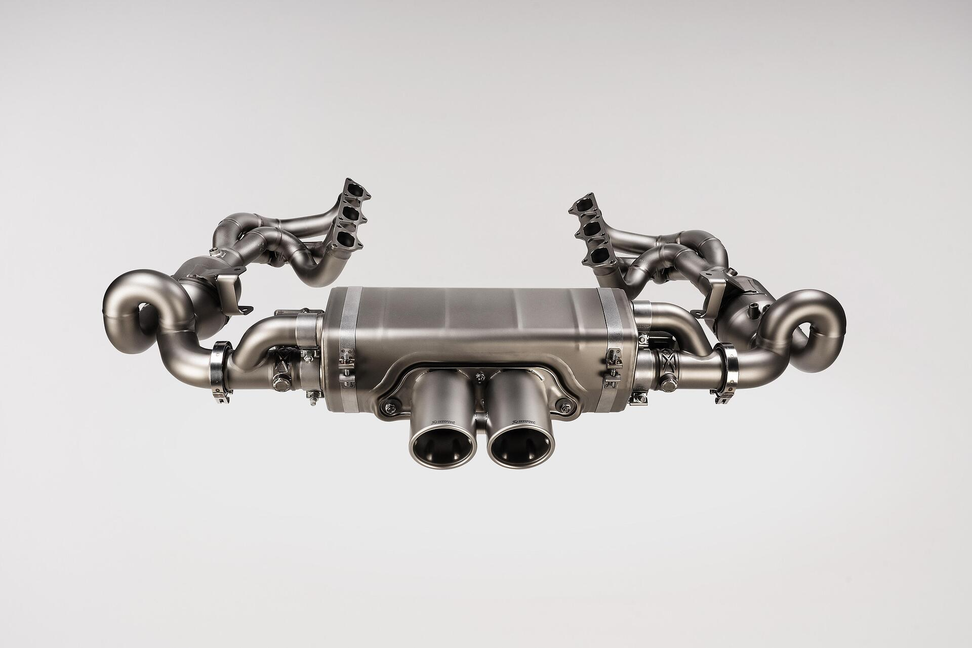 Разработена специално за 911 GT3 (992), тази висококачествена лека титаниева изпускателна система добавя мошност и намаля теглото. Изцяло новият дизайн включва двойни изпускателни тръби, с покрита външна обвивка и вътрешна втулка с шест отпечатъка, които съответстват на шестцилиндровия двигател, с гравирано лого на Akrapovič за завършване на визуалния ефект. Корпусът на изпускателните клапани – които са съобразени перфектно с газовия поток, за да произвежда плавен, богат тон при нормално движение и спортно звуково изживяване при по-високи обороти – и колекторите в ауспуха са отлети във вътрешната леярна на Akrapovič . При комбиниране на Slip-On Race Line (Titanium) с Slip-On Race Line Adapter (SS), теглото се намалява с 20,7% (3,5 kg) спрямо стандартната система, а производителността се увеличава с 6,5 kW (8,8 к.с.) при мощност при 2900 об/мин и увеличение на въртящия момент от 24,1 Nm при 2400 об/мин при тестване на дино Akrapovič срещу Porsche 911 GT3 (992) със стандартна стандартна изпускателна система. Тази система е предназначена за използване на състезателни писти със затворени трасета само защото е част, ориентирана към състезателна писта. Не е необходимо ремапване на ECU.