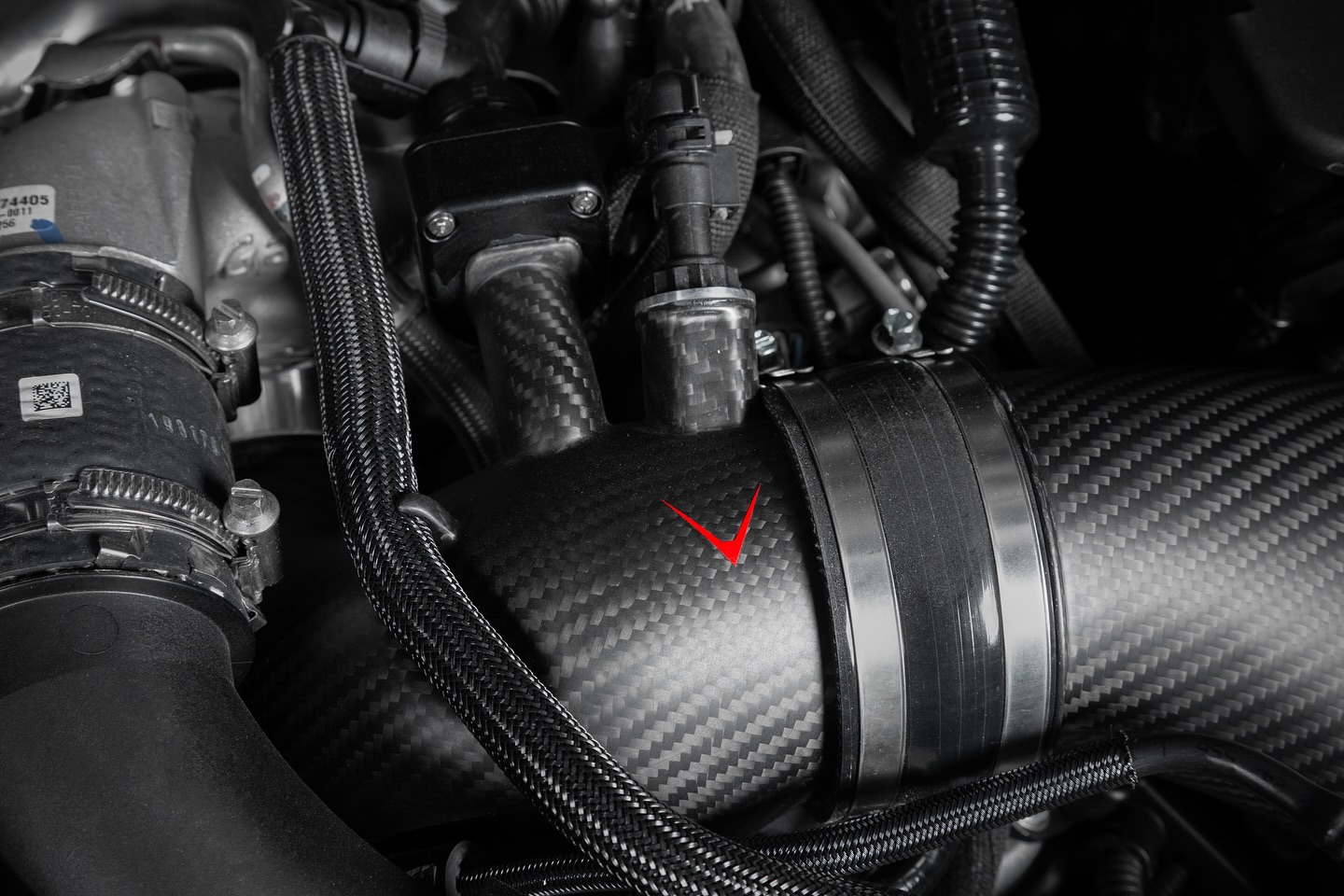 Интейк система G90/G91 M5 Eventuri е разработена, за да осигури оптимизиран път на въздушния поток към турбокомпресорите, като същевременно минимизира прегряването, за да увеличи максимално производителността. Проектирахме запечатана система, за да предотвратим засмукването на нагрятия въздух от входа, но балансирахме това изискване с предимствата на двойното подаване на въздух, за да намалим общия спад на налягането. Каналите поемат въздух от захранванията на OEM и също така разполагат с вторични отвори, стратегически разположени близо до капаците на капака. Тези отвори влизат в постоянно студена област на двигателния отсек, осигурявайки допълнителен източник на хладен въздух. В допълнение, тези вторични отвори също подобряват чуваемостта на турбокомпресорите в кабината, добавяйки потапящо измерение към вашето шофиране.
