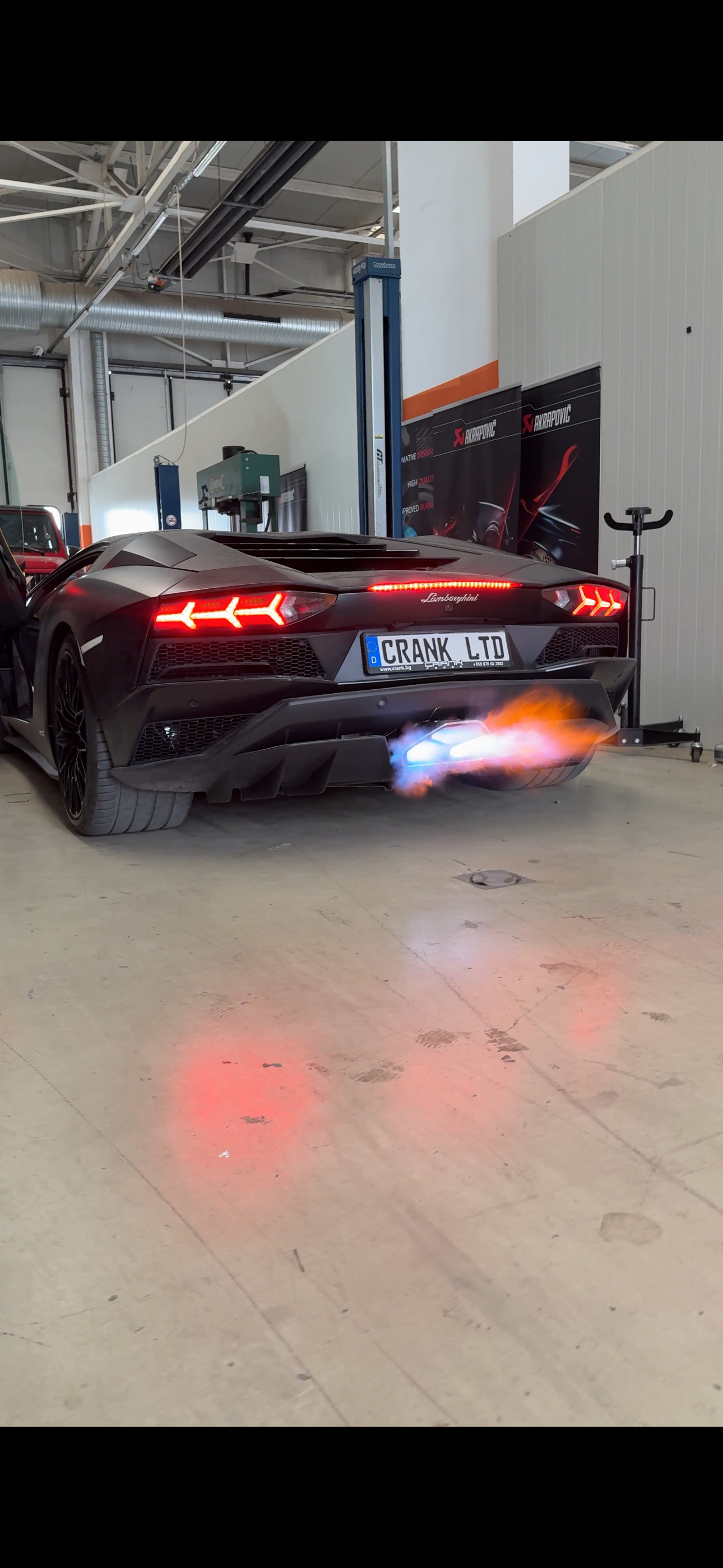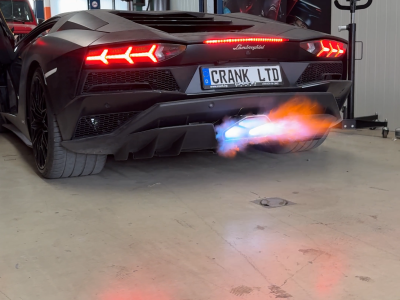 Lamborghini LP-740 Aventador S tailored exhaust made by Crank Ltd shooting flames